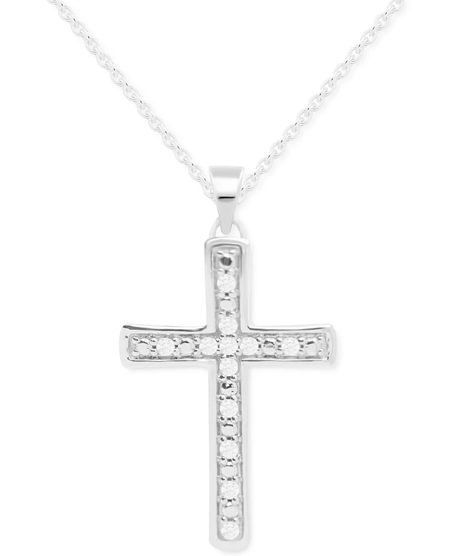 Diamond Cross Pendant Necklace (1/10 ct. t.w.) in Sterling Silver