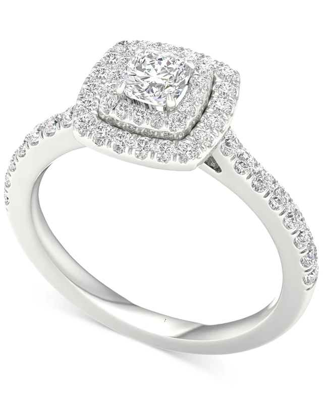 Diamond Cushion Double Halo Engagement Ring (3/4 ct. t.w.) in 14k White Gold
