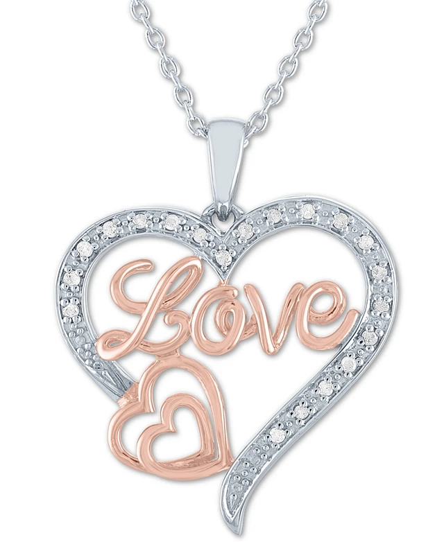 Diamond Love Heart Pendant Necklace (1/10 ct. t.w.) in Sterling Silver & 14k Rose Gold-Plate, 16" + 2" extender