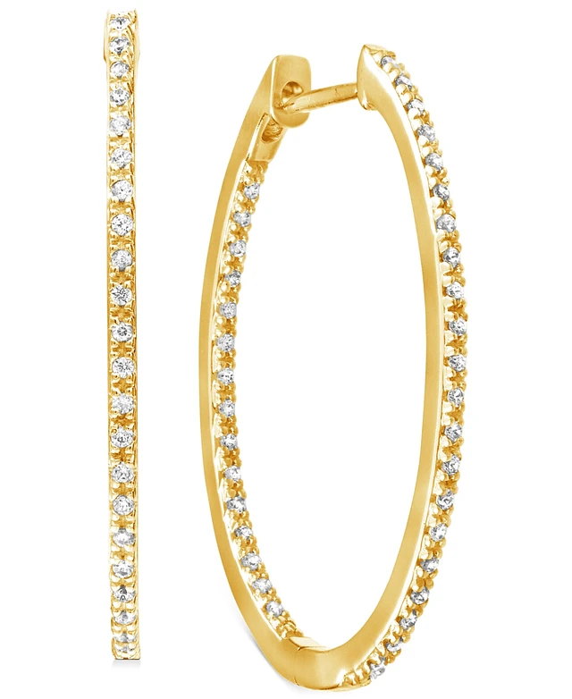 Diamond Medium In & Out Hoop Earrings (1/4 ct. t.w.) in 14k Gold-Plated Sterling Silver, 1.1"