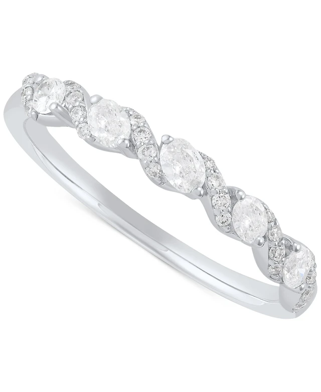 Diamond Oval & Round Twist Band (1/3 ct. t.w.) in 14k White Gold