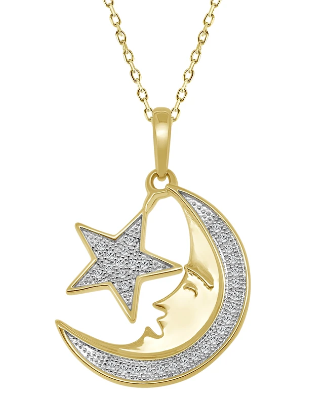 Diamond Moon & Star 18" Pendant Necklace (1/10 ct. t.w.) in Sterling Silver & 14k Gold-Plate