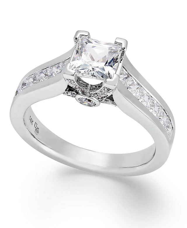 Diamond Princess Cut (1-1/2 ct. t.w.) Engagement Ring in 14k White Gold