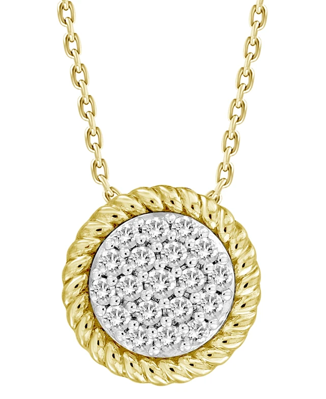 Diamond Rope-Framed Circle Pendant Necklace (1/4 ct. t.w.) in 10k Gold, 16" + 2" extender
