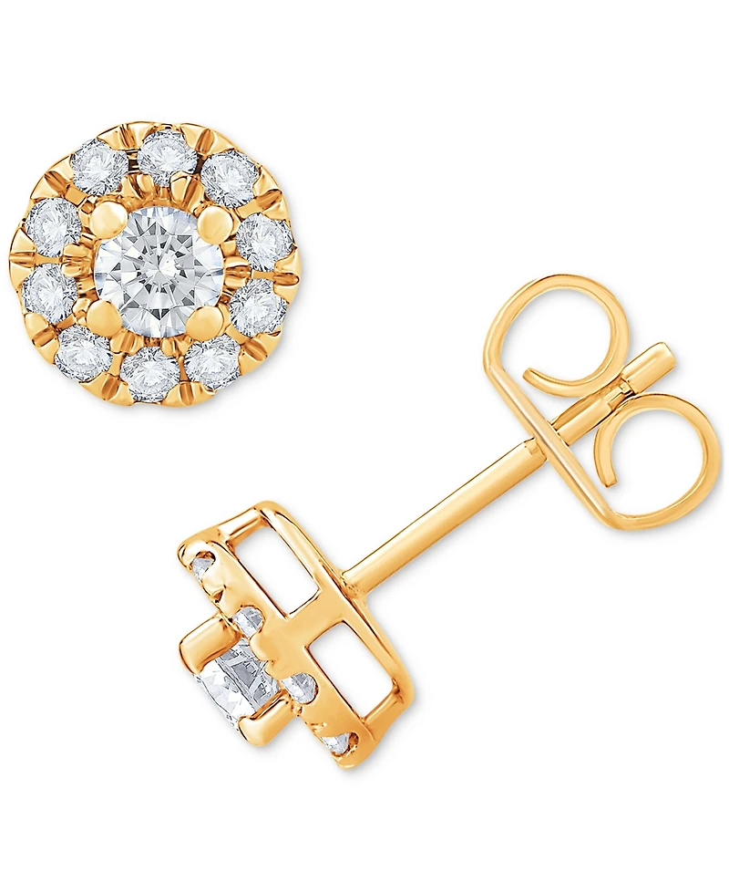 Perfect your look with a pop of sparkle. These stunning halo-style stud earrings dazzle in round-cut diamonds (1/2 ct. t.w.).