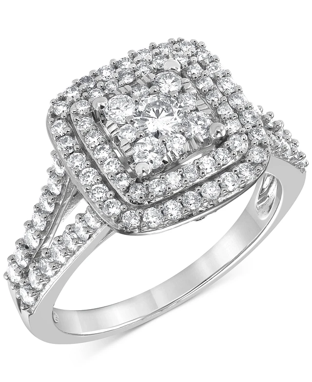 Diamond Square Halo Cluster Ring (1 ct. t.w.) in 14k White Gold