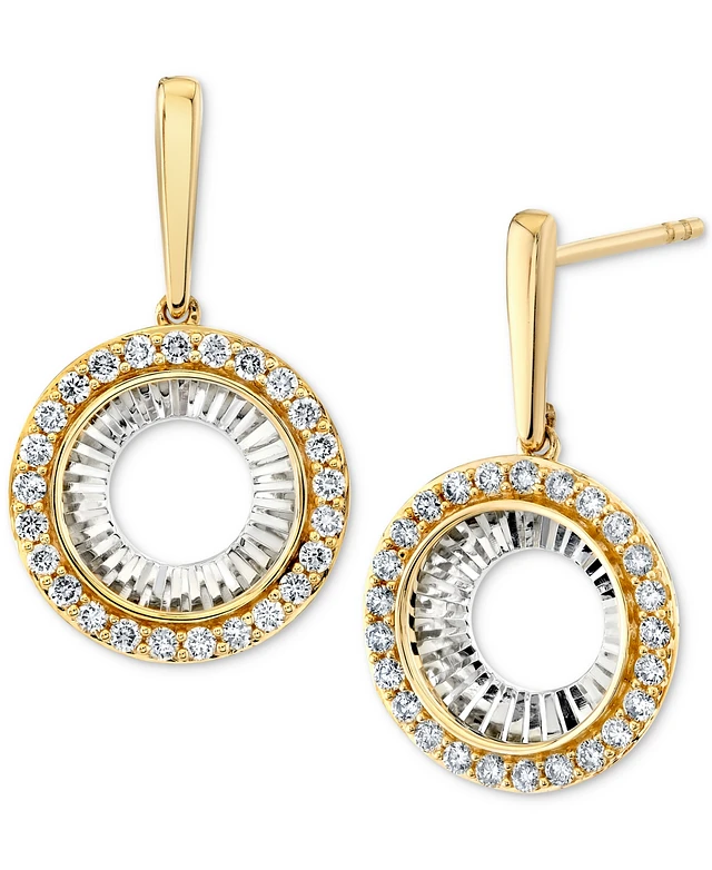 Diamond Sunray Circle Drop Earrings (1/2 ct. t.w.) in 14k Two-Tone Gold