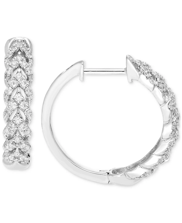 Diamond Woven Look Small Hoop Earrings (1/2 ct. t.w.) in Sterling Silver, 0.77"