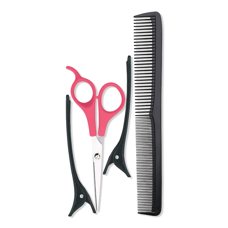 HOME CUT KIT FOR CUTTING + TRIMMING. Benefits: Cuts and trims hair at home. Includes: Durable Japanese steel shears. 7.5" cutting comb for precision cutting and styling. 36" x 26" black cutting cape protects clothing and skin from hair clippings. Hair clips for sectioning hair (2 ct). :