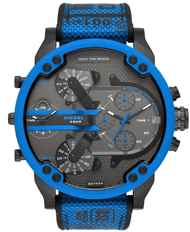 Diesel Men's Mr Daddy 2.0 Three-Hand Blue Silicone Strap Buckle Watch, 57mm