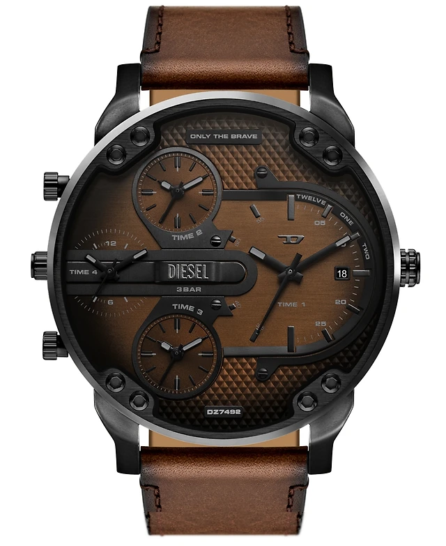 Diesel Men's Mr. Daddy Slim Quartz Three-Hand Date Brown Leather Watch, 54mm