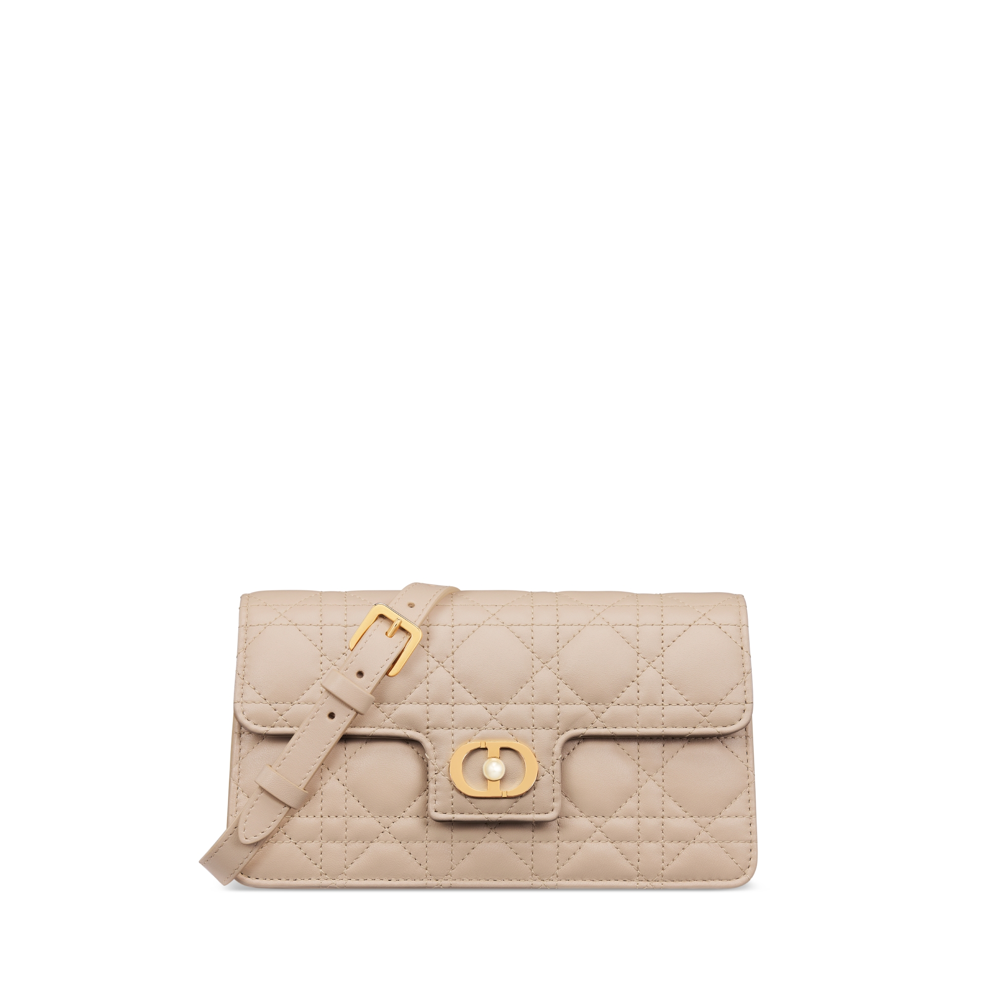 The Dior Jolie mini bag presents an elegant and functional design. Crafted in black tweed with a white Cannage motif, the style features a flap, enhanced by a gold-finish metal CD signature with a white resin pearl, that opens to reveal a compartment to accommodate all the essentials. The adjustable, detachable CD chain link strap is interspersed with white resin pearls and includes a leather insert, allowing the bag to be comfortably carried by hand, worn over the shoulder or crossbody, day or evening. Main composition: cotton, technical fabric and calfskin. Calfskin and technical fabric lining. CD clasp with white resin pearl on the front. Flap closure. Interior slip pocket. Six card slots. Adjustable and removable chain shoulder strap with resin pearls and leather insert. Dust bag included. Made in Italy