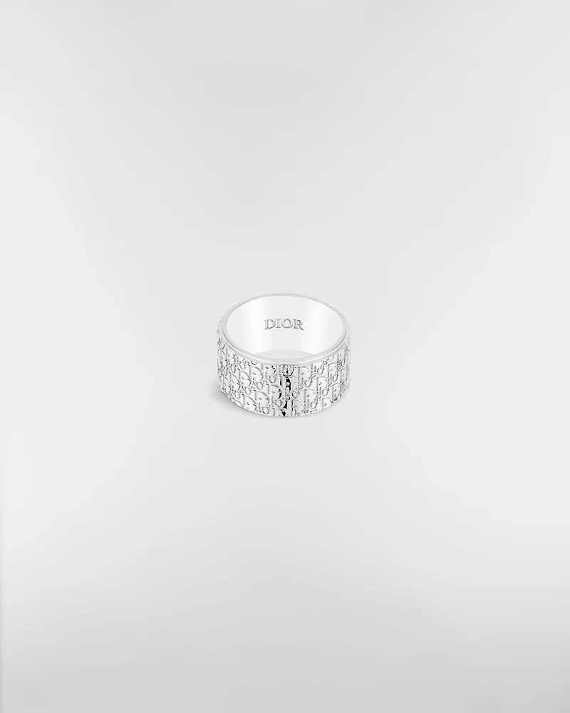 The luminous silver ring showcases the House's iconic Dior Oblique motif engraved on the entire surface. The wide design adds a contemporary statement to the stylish silhouette. The ring can be worn with other Dior Oblique pieces from the collection.