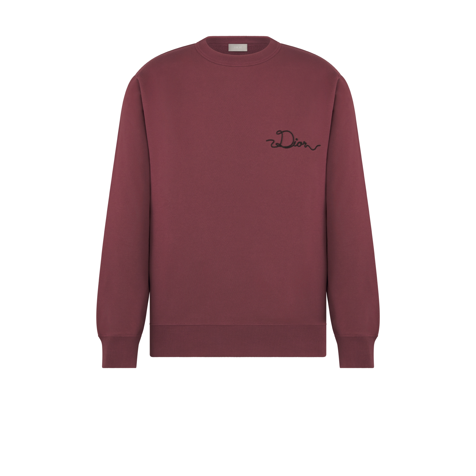 New for Spring 2026, the sweatshirt showcases the Dior Ribbon signature celebrating the virtuosity of the House ateliers. Crafted in burgundy cotton fleece, it features a ribbed crew neck, cuffs and hem. The relaxed silhouette will pair with oversized pants. Dior Ribbon embroideries on the chest and back. Ribbed crew neck, cuffs and hem. 100% cotton. Made in Italy