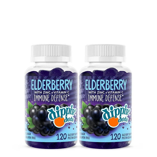 Dippin' Dots Elderberry Immune Defense Gummies - Very Berry Twin Pack (60 Servings Each)