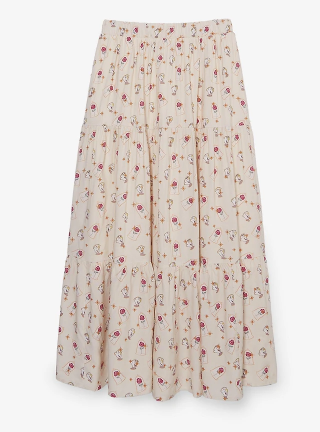 Disney Beauty and the Beast Chip & Roses Allover Print Maxi Skirt