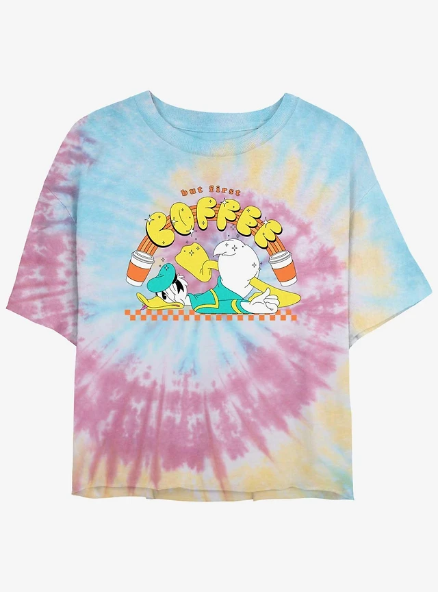 Disney Donald Duck But First Coffee Tie Dye Crop Womens T-Shirt