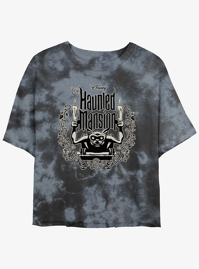 Disney Haunted Mansion Gargoyle Candle Holder Tie-Dye Womens Crop T-Shirt