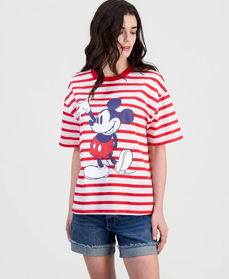Disney Juniors' Mickey Mouse Striped Crewneck Tee
