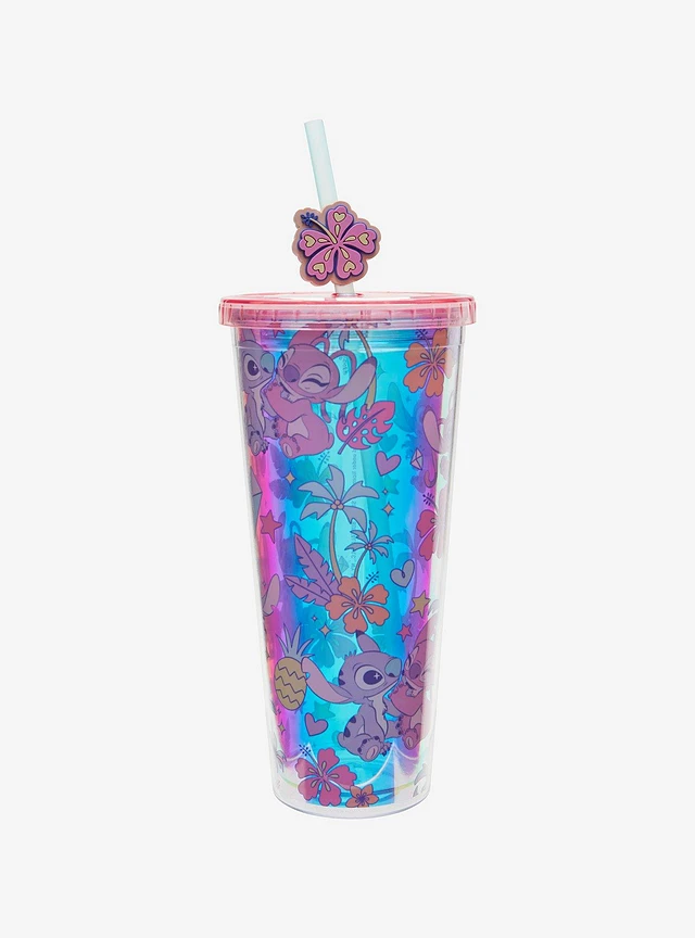 Disney Lilo & Stitch Angel & Stitch Floral Allover Print Carnival Cup with Straw Charm