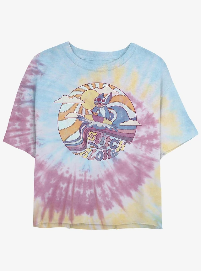 Disney Lilo & Stitch Ride The Waves Tie-Dye Womens Crop T-Shirt