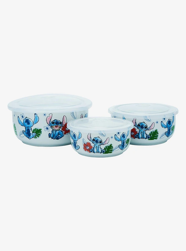 Disney Lilo & Stitch Sketch Stitch Hibiscus Ceramic Food Storage Bowl Set