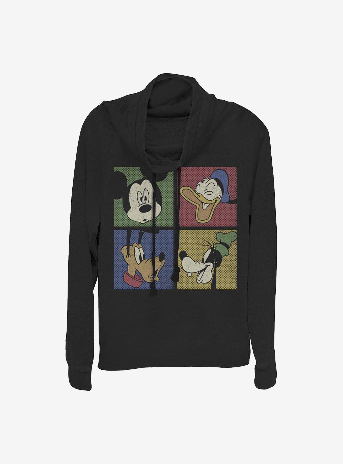 Disney Mickey Mouse Block Party Cowl Neck Long-Sleeve Womens Top