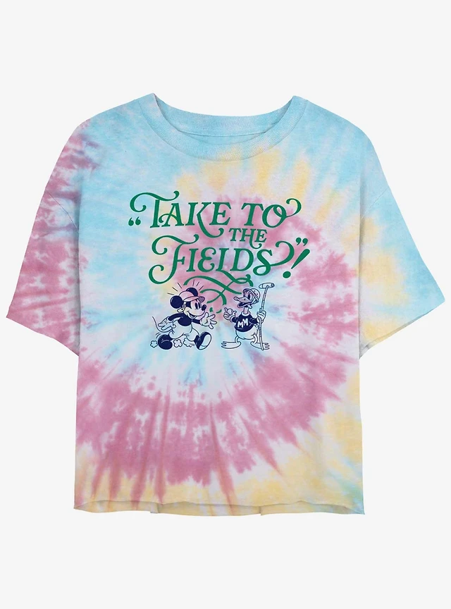 Disney Mickey Mouse & Donald Duck Take To The Fields Tie Dye Crop Womens T-Shirt
