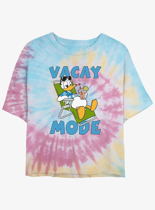 Disney Mickey Mouse Donald Vacay Mode Womens Tie-Dye Crop T-Shirt