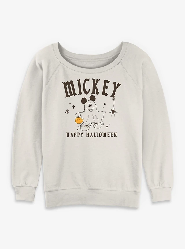Disney Mickey Mouse Happy Halloween Ghost Spirits Womens Slouchy Sweatshirt