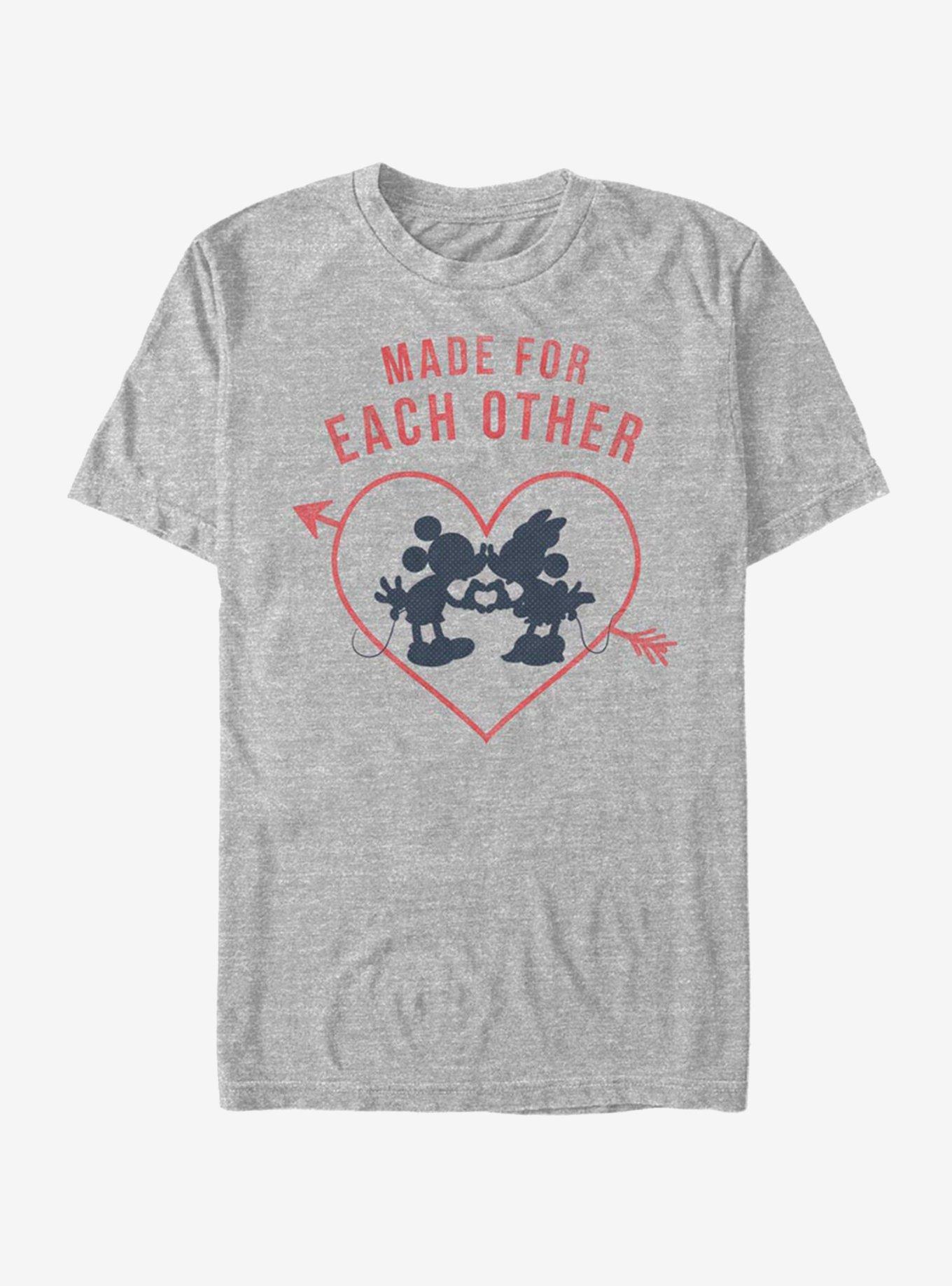 They're made for each other! This lightweight tee features polka dot-accented Mickey and Minnie silhouettes within a heart and arrow frame. Mwah!