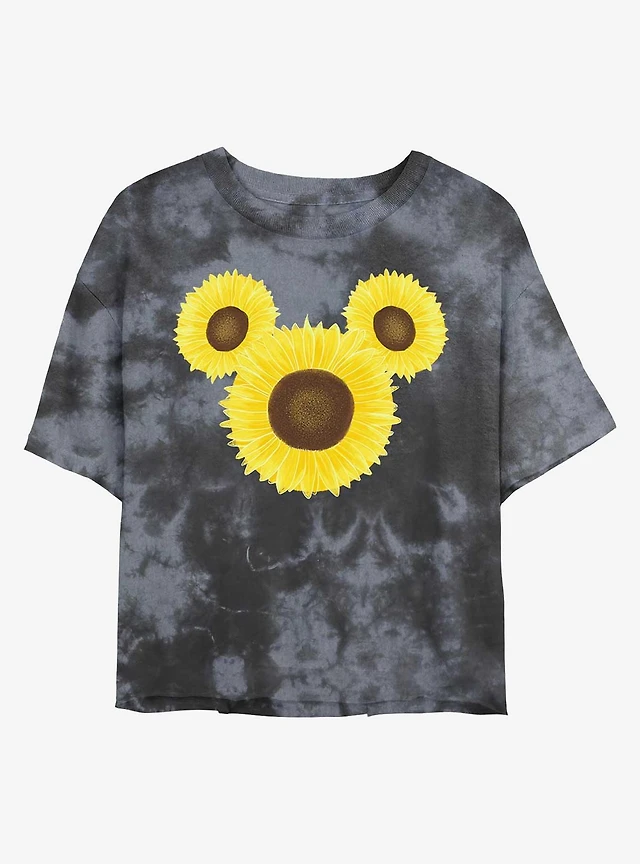 Disney Mickey Mouse Sunflower Womens Tie-Dye Crop T-Shirt