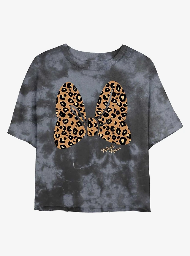 Disney Minnie Mouse Animal Print Bow Womens Tie-Dye Crop T-Shirt