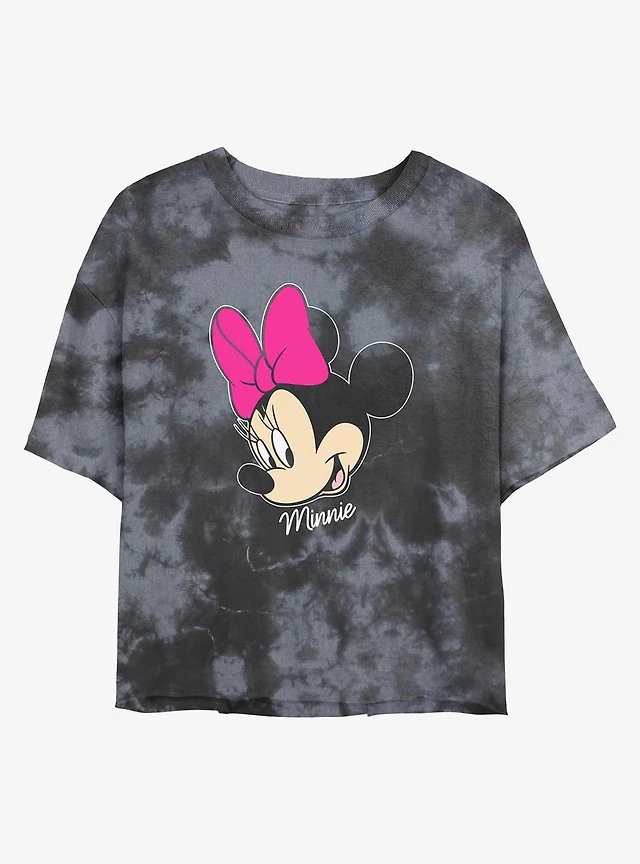 Disney Minnie Mouse Big Face Womens Tie-Dye Crop T-Shirt
