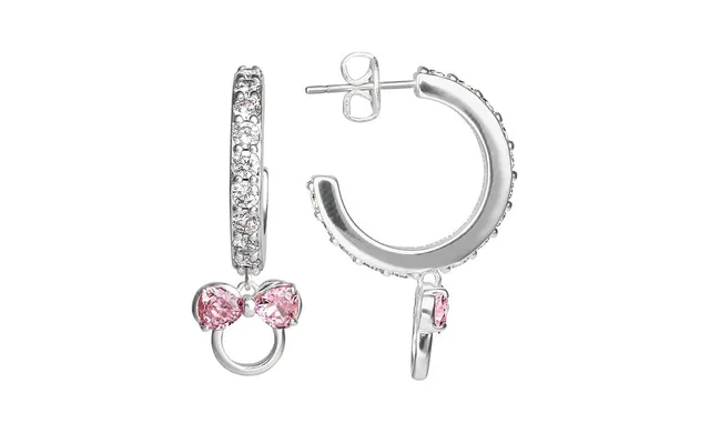 Disney Minnie Mouse Cubic Zirconia Hoop Earrings, Officially Licensed