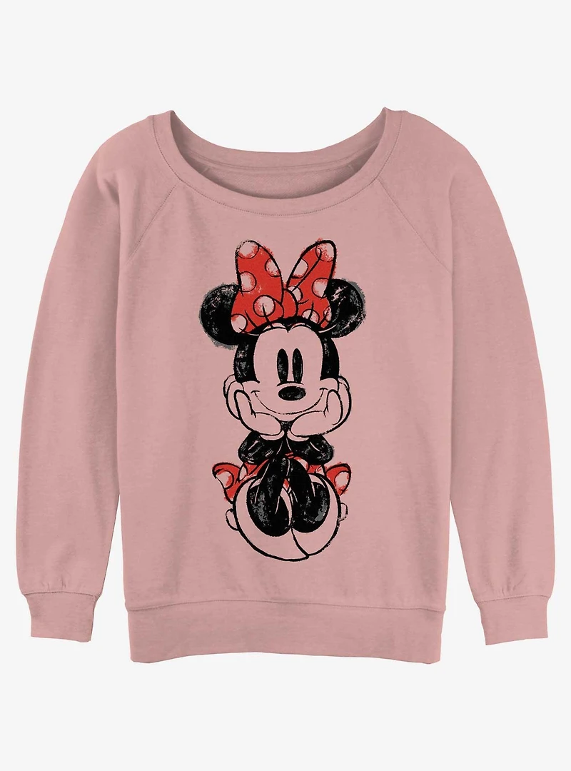 Disney Minnie Mouse Sitting Sketch Womens Slouchy Sweatshirt