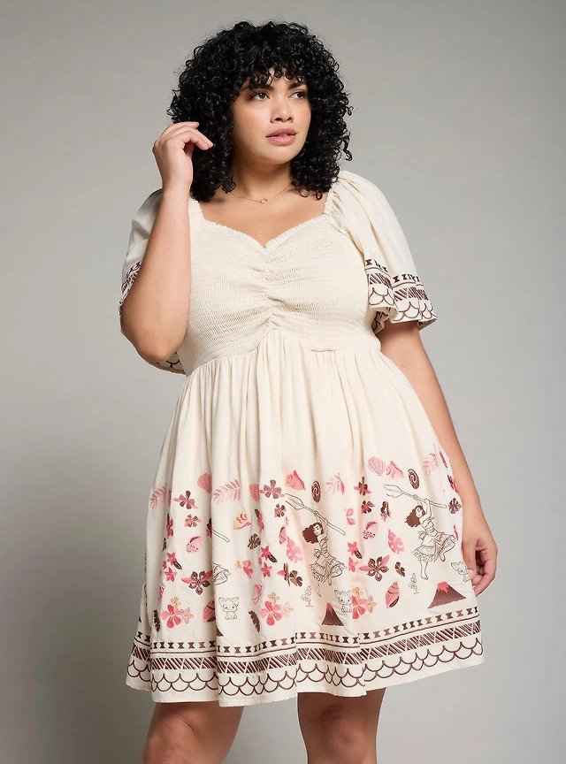 Disney Moana Floral Icons Cinched Plus Smock Dress - BoxLunch Exclusive