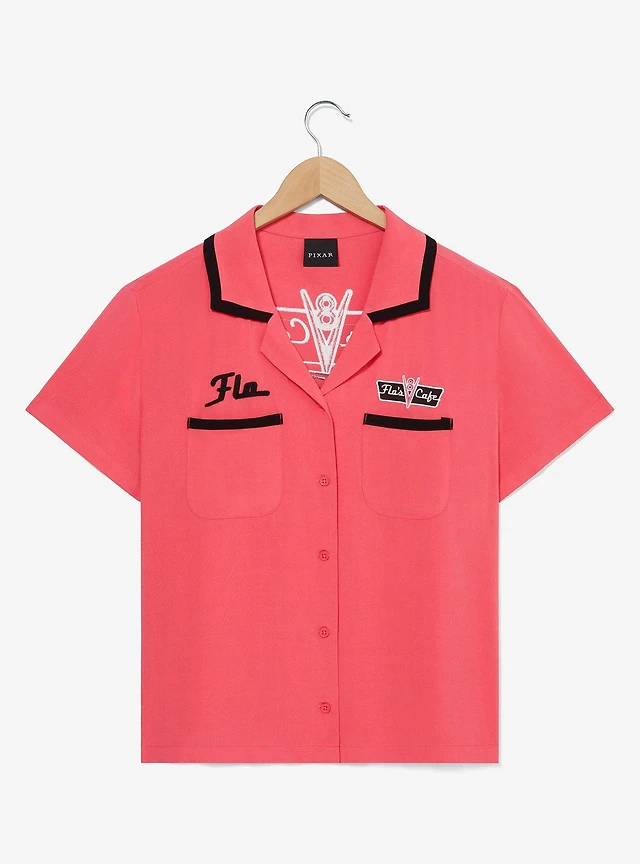Disney Pixar Cars Flo's Cafe Women's Cropped Woven Button-Up — BoxLunch Exclusive