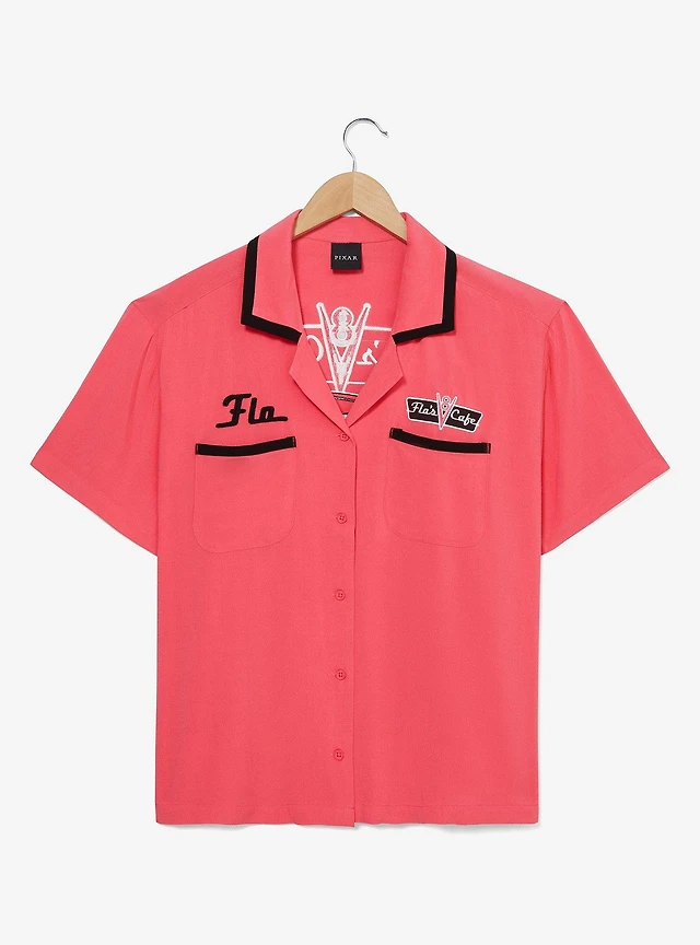 Disney Pixar Cars Flo's Cafe Women's Plus Cropped Woven Button-Up — BoxLunch Exclusive
