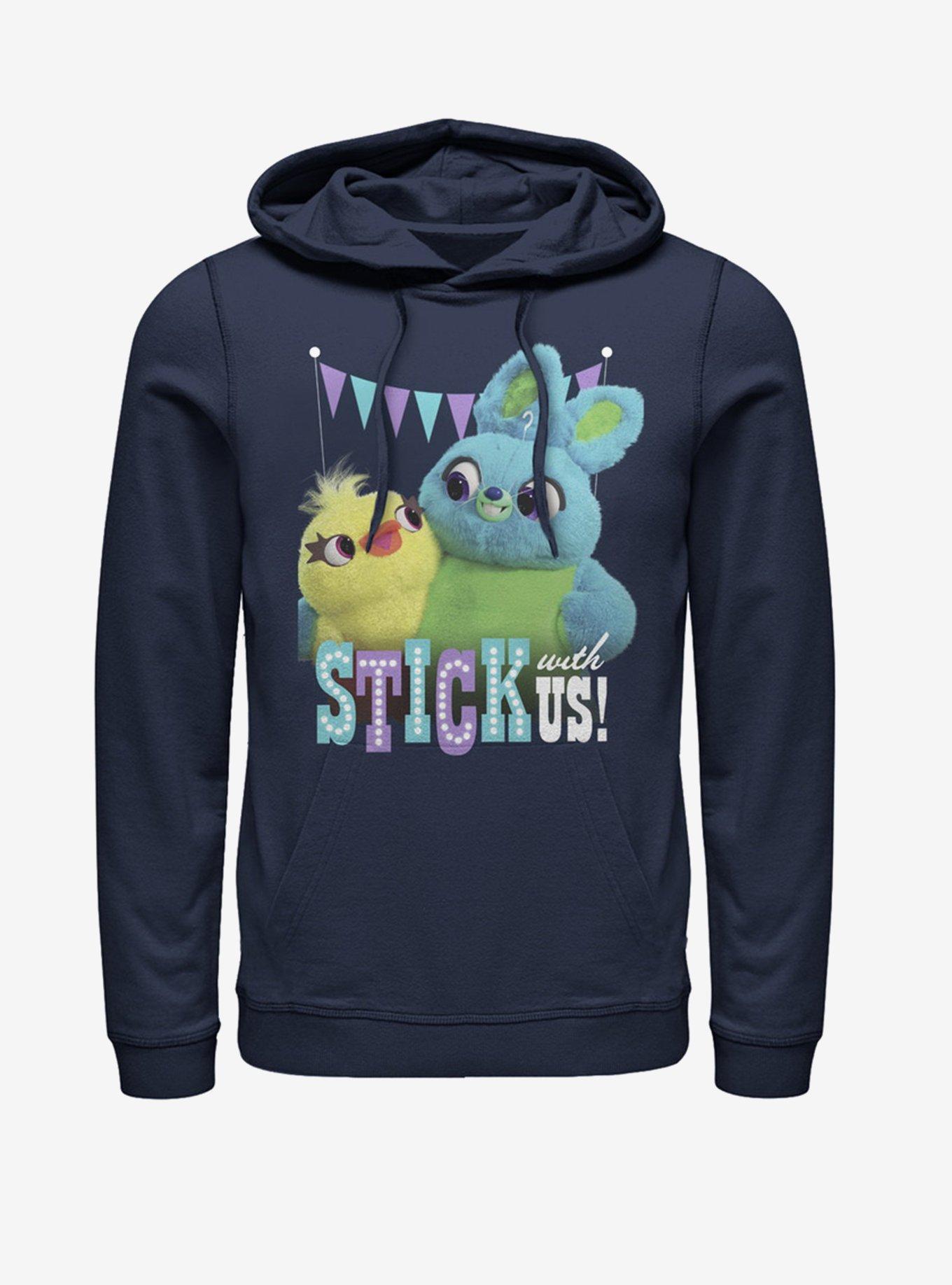 Stick with them, 'cause they're totally gonna be your new favorite toys. Bring Ducky and Bunny, from Toy Story 4, from the carnival to your home with this pullover navy blue hoodie.