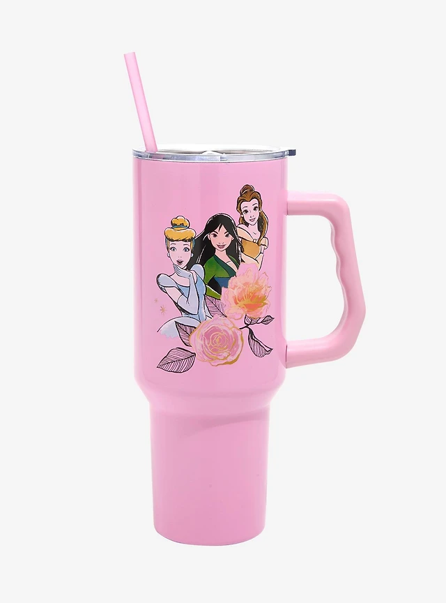 Disney Princess Illustrated Pink Straw Tumbler With Handle
