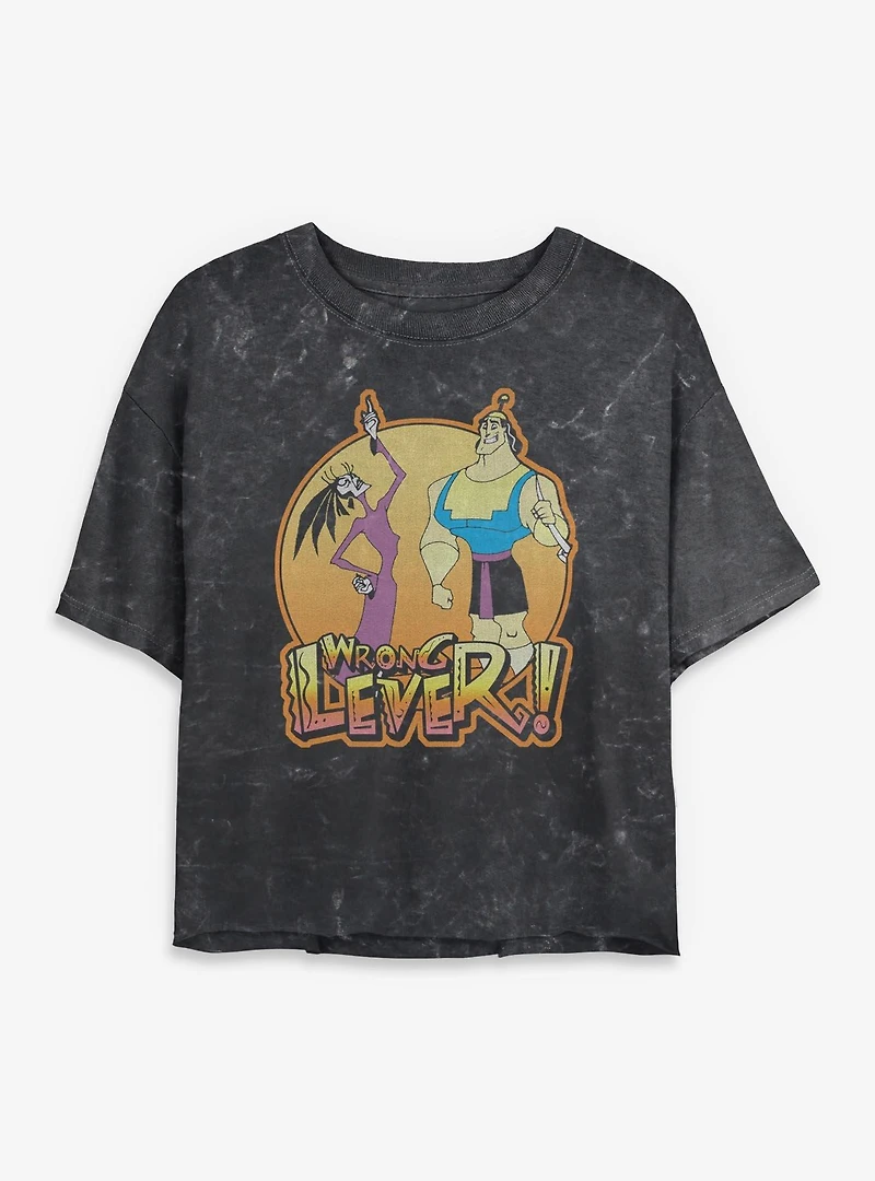 Product ID: 36553742 Disney The Emperor's New Groove Yzma and Kronk Wrong Lever Mineral Wash Womens Crop T-Shirt