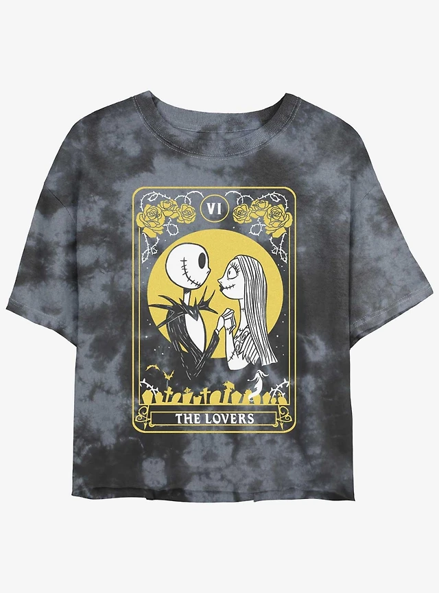 Disney The Nightmare Before Christmas Lovers Tarot Card Tie-Dye Womens Crop T-Shirt