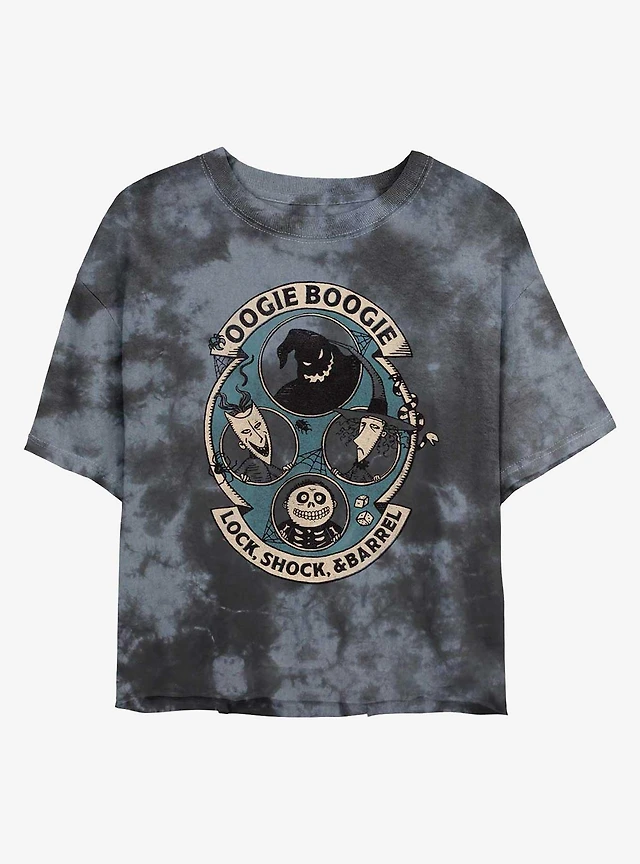 Disney The Nightmare Before Christmas Oogie Boogie and Lock, Shock, & Barrel Tie-Dye Womens Crop T-Shirt