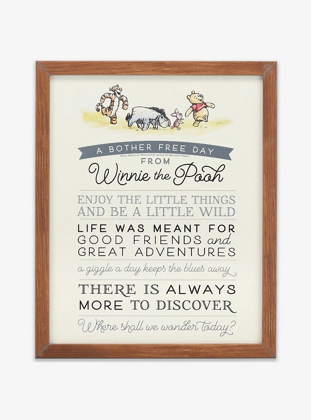 Disney Winnie The Pooh Bother Free Day Framed Wood Wall Decor