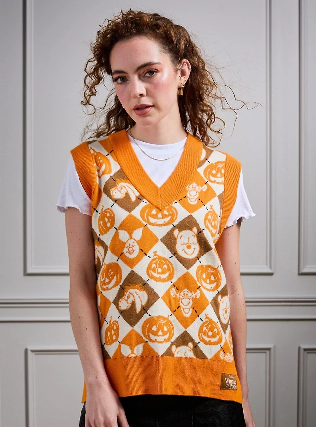 Disney Winnie the Pooh Characters & Pumpkins Argyle Women's Sweater Vest - BoxLunch Exclusive