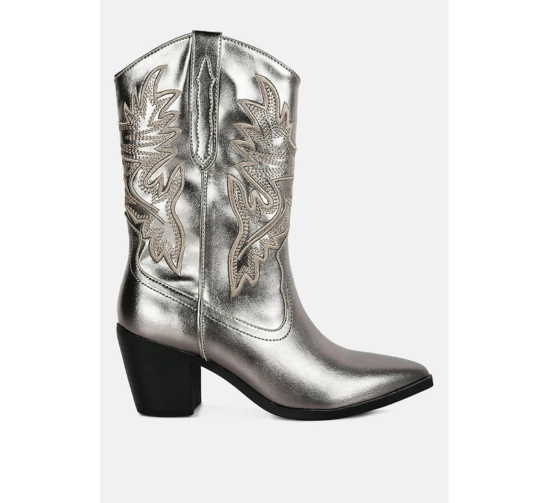 The cowboy boots with gorgeous embroidery pattern are a sight to behold. The boots are sure to amp up any outfit with their maximalist style and with the low block heels and lightly cushioned insoles, the heeled boots are effortlessly fashionable.