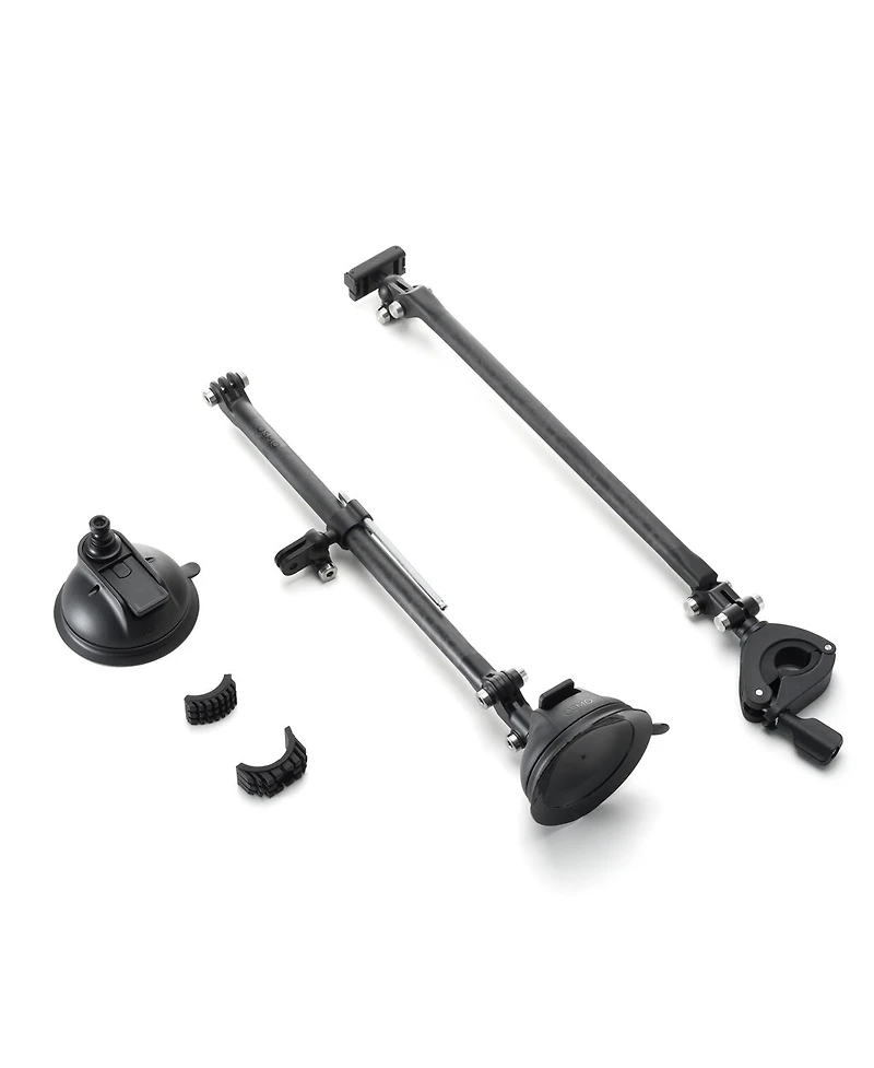 This kit features high-strength carbon fiber tubes, offering both durability and portability. With both a suction cup mount and a handlebar mount, it can be securely attached to car windows for in-vehicle filming, or firmly mounted on bicycle handlebars for outdoor cycling shots. The folding arm supports multi-angle adjustment, enabling you to capture a wide range of perspectives. The magnetic quick-release design allows for one-way magnetic attachment to the camera-fast, secure, and ready for any adventure..