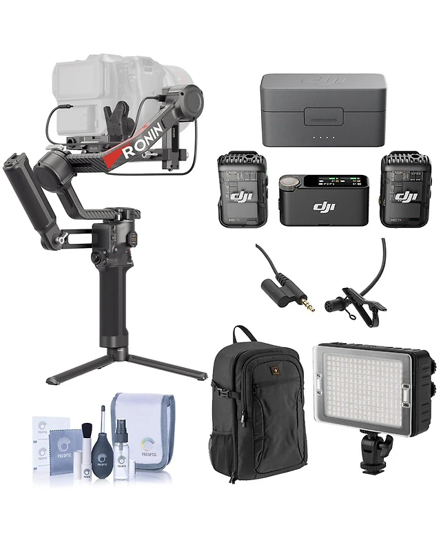 Dji Rs 4 Pro Combo Bundle With On Camera Led Light Shotgun Microphone Backpack