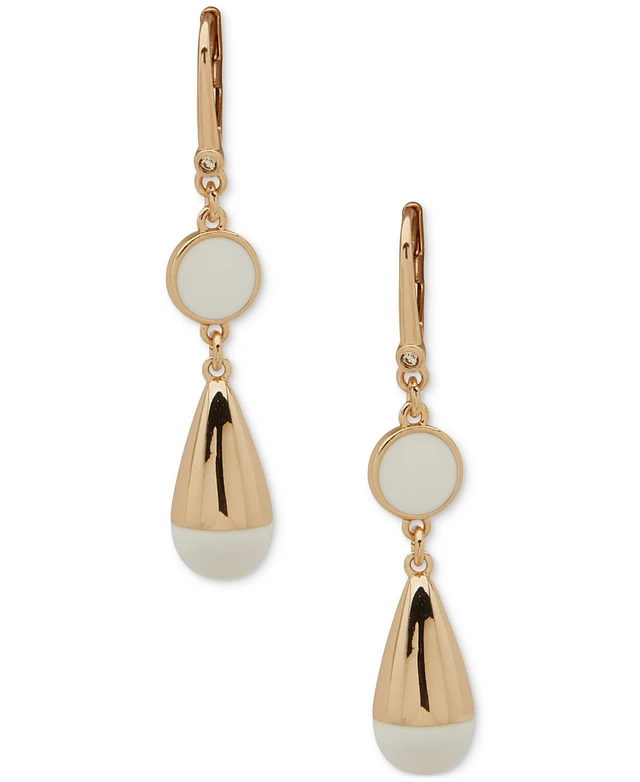 Dkny Gold-Tone White Enamel Double Drop Leverback Earrings